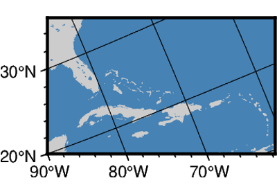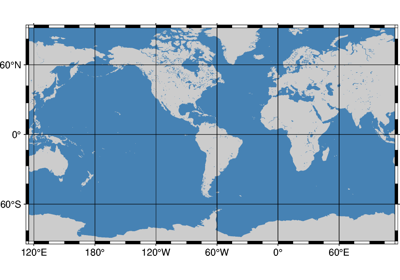 PyGMT supports many map projections; see GMT Map Projections for an overview. Use the projection parameter to specify which one you want to use in all plotting methods. The projection is specified by a one-letter code along with (sometimes optional) reference longitude and latitude and the width of the map (for example, Alon0/lat0[/horizon]/width). The map height is determined based on the region and projection.